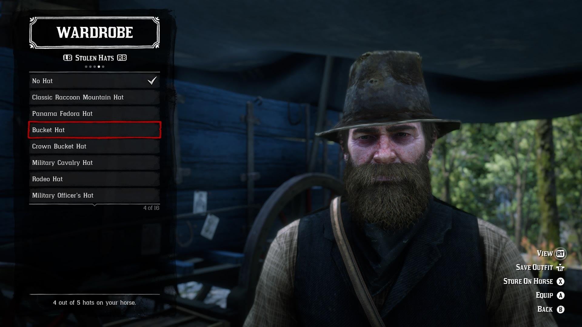 To store an Item on a horse in red dead redemption the player would need to go near the horse and press the LBL1 button. Then the next step would be to use the RBR1 button to tab over to the horse menu. There are so many different hats available to be worn in Red Dead Redemption 2.